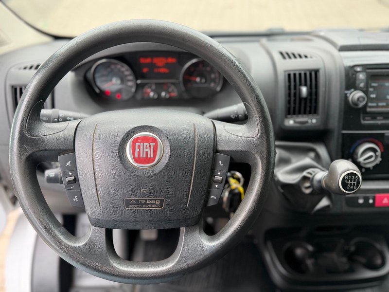 Airbag Fahrerseite, Blinkleuchten im Außenspiegel integriert, Bremsassistent, Heckflügeltüren ohne Verglasung, Karosserie/Aufbau: Kasten Standard, Kurbelgehäuseentlüftung beheizt, Laderaumtrennwand (Gitter) hinter Fahrer, Laderaumtrennwand herausnehmbar (ohne Fenster), Lenksäule (Lenkrad) verstellbar, Motor 2,3 Ltr. - 96 kW JTD KAT, Radstand 3450 mm, Reifen-Reparaturkit, Schadstoffarm nach Abgasnorm Euro 6, Schiebetür Lade-/Fahrgastraum rechts, Seitenschutzleisten, Sitzbezug / Polsterung: Stoff, Sitze im Fahrerhaus: Beifahrerdoppelsitz, Sitze im Fahrerhaus: Fahrersitz höhenverstellbar, Sitze im Fahrerhaus: Fahrersitz mit Armlehne und Lendenwirbelstütze, Verglasung leicht getönt, Wassersensor Kraftstoff-Filter, Ölstandsensor.