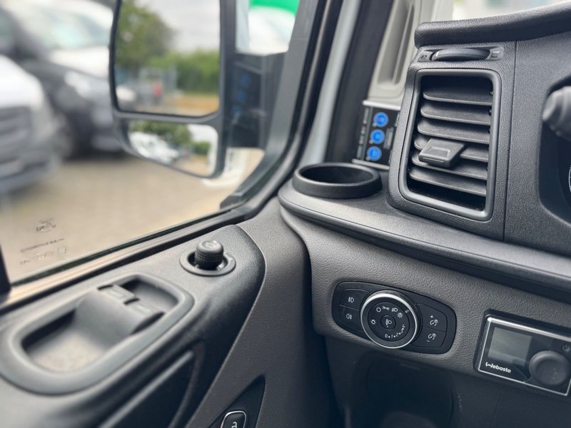 Airbag Beifahrerseite, Audiosystem 21: Radioempfang Digital (DAB / DAB+) mit 8" Multifunktionsdisplay, Außenspiegel elektr. anklappbar, Batterieüberwachung programmierbar, Fahrassistenz-System: Spurhalteassistent, Fahrassistenz-System: Spurhalteassistent mit Müdigkeitserkennungs-Sensor, Ford SYNC 3, Generator 240 A, Laderaumleuchte LED, Laderaumtrennwand hoch hinter Fahrer und Beifahrer, mit Fenster und Durchlademöglichkeit unten, Rückfahrkamera mit Farbdisplay, Sitz-Paket 9 / 15 Fahrersitz (4-fach verstellbar) - Beifahrerdoppelsitz inkl. Sitzheizung, Stoff, Standheizung