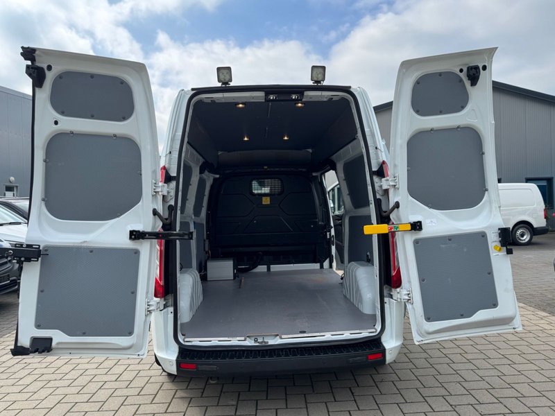Airbag Fahrerseite, Anhänger-Stabilisierungs-Programm (TSA), Audiosystem 13: Radioempfang Digital (DAB / DAB+) mit 4" Multifunktionsdisplay, Audiosystem: Radio mit USB und Bluetooth-Freisprecheinrichtung, Außenspiegel elektr. verstell- und heizbar, Blinkleuchte in Außenspiegel integriert, Bodenbelag: Vinyl im Lade-/Fahrgastraum, Bordcomputer, Einstiegsleuchten, Elektr. Bremskraftverteilung (EBD), Elektron. Traktionskontrolle, Fahrassistenz-System: Berganfahr-Assistent, Fahrassistenz-System: Notbrems-Assistent, Fahrassistenz-System: Seitenwind-Assistent, Handschuhfach abschließbar, Heckflügeltüren ohne Verglasung (Öffnungswinkel 180 Grad), Innenleuchten im Fahrerhaus: Leseleuchte vorn, Innenraumfilter: Pollenfilter, Karosserie/Aufbau: Kasten Hochraum Standard, Karosserievariante: Mittelhohes Dach, Kühlergrill schwarz grau, Lenksäule (Lenkrad) höhen-/längsverstellbar, LKW-Zulassung, Modellpflege, Motor 2,0 Ltr. - 96 kW TDCi KAT, Parkpilotsystem, Parkpilotsystem vorn und hinten, Radioempfang Digital (DAB+), Radstand 3300 mm, Reserverad in Fahrbereifung, Schadstoffarm nach Abgasnorm Euro 6, Schadstoffarm nach Abgasnorm Euro 6d-TEMP, Scheibenwischer mit Intervallschaltung, regulierbar, Scheinwerfer H4, Schiebetür Lade-/Fahrgastraum rechts, Schmutzfänger vorn und hinten, Seitenschutzleisten, Stahlfelgen 6,5x16, Start/Stop-Anlage, Stoßfänger teillackiert, Style-Farb-Paket, Tagfahrlicht LED, Trend, Verkleidung im Lade-/FG-Raum: halbhoch, Verzurrösen (8), Wärmeschutzverglasung leicht getönt, Zusatzheizung elektrisch
