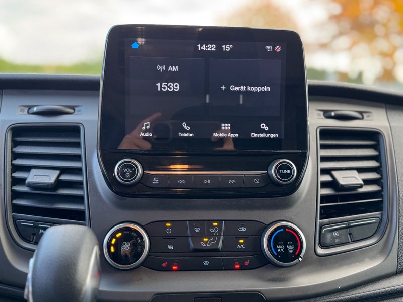 Audiosystem 21: Radioempfang Digital (DAB / DAB+) mit 8" Multifunktionsdisplay, Fernbedienung für Standheizung / Zusatzheizung, Ford SYNC 3, Generator 240 A, Laderaumleuchte LED, Laderaumtrennwand hoch hinter Fahrer und Beifahrer, mit Fenster und Durchlademöglichkeit unten, Metallic-Lackierung, Sicht-Paket 2, Sitz-Paket 9 / 15 Fahrersitz (4-fach verstellbar) - Beifahrerdoppelsitz inkl. Sitzheizung, Stoff, Standheizung, Steckdose 12V im Lade-/Fahrgastraum