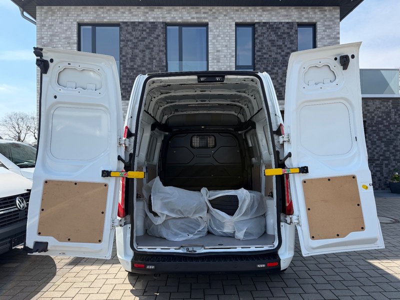 Airbag Fahrerseite, Anhänger-Stabilisierungs-Programm (TSA), Audiosystem 13: Radioempfang Digital (DAB / DAB+) mit 4" Multifunktionsdisplay, Audiosystem: Radio mit USB und Bluetooth-Freisprecheinrichtung, Außenspiegel elektr. verstell- und heizbar, Blinkleuchte in Außenspiegel integriert, Bodenbelag: Vinyl im Lade-/Fahrgastraum, Bordcomputer, Einstiegsleuchten, Elektr. Bremskraftverteilung (EBD), Elektron. Traktionskontrolle, Fahrassistenz-System: Berganfahr-Assistent, Fahrassistenz-System: Notbrems-Assistent, Fahrassistenz-System: Seitenwind-Assistent, Handschuhfach abschließbar, Heckflügeltüren ohne Verglasung (Öffnungswinkel 180 Grad), Innenleuchten im Fahrerhaus: Leseleuchte vorn, Innenraumfilter: Pollenfilter, Karosserie/Aufbau: Kasten Standard, Kühlergrill schwarz grau, Lenksäule (Lenkrad) höhen-/längsverstellbar, LKW-Zulassung, Modellpflege, Motor 2,0 Ltr. - 96 kW TDCi KAT, Parkpilotsystem, Parkpilotsystem vorn und hinten, Radioempfang Digital (DAB+), Radstand 2933 mm, Reserverad in Fahrbereifung, Schadstoffarm nach Abgasnorm Euro 6, Schadstoffarm nach Abgasnorm Euro 6d-TEMP, Scheibenwischer mit Intervallschaltung, regulierbar, Scheinwerfer H4, Schiebetür Lade-/Fahrgastraum rechts, Schmutzfänger vorn und hinten, Seitenschutzleisten, Stahlfelgen 6,5x16, Start/Stop-Anlage, Stoßfänger teillackiert, Style-Farb-Paket, Tagfahrlicht LED, Trend, Verkleidung im Lade-/FG-Raum: halbhoch, Verzurrösen (8), Wärmeschutzverglasung leicht getönt, Zusatzheizung elektrisch.