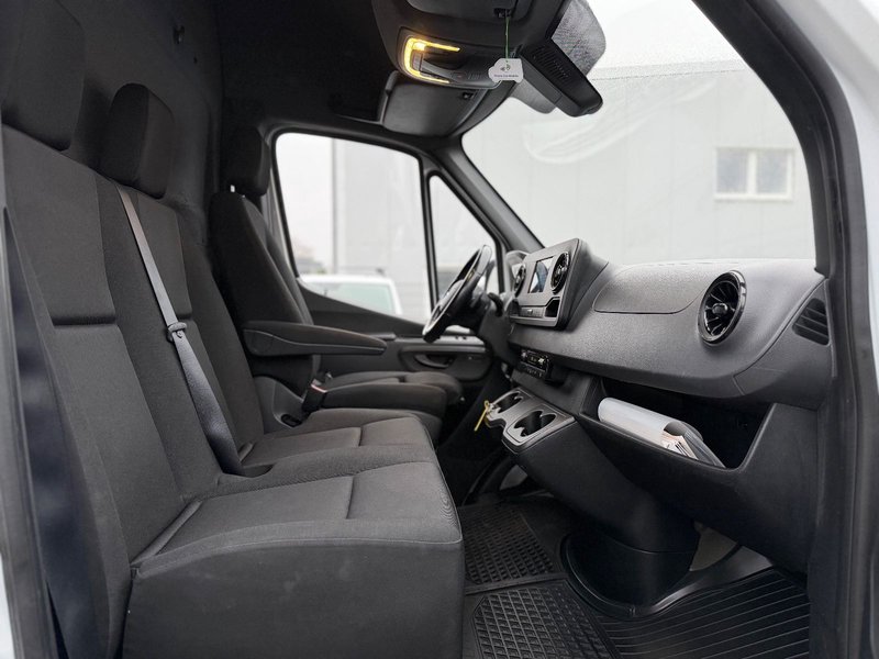 Ablagefach oberhalb Frontscheibe, Ablagefach unterhalb Armaturentafel Beifahrerseite, Aktiver Abstands-Assistent Distronic, Akustik-Paket, Anhängersteckdose 13-polig, Armauflage, Fahrer- und Beifahrertür, Außenspiegel elektr. anklappbar, Außenspiegel elektr. verstell- und heizbar, beide, Außenspiegel mit Totwinkel-Assistent, Batterietrennschalter 1-polig, Bodenbelag: Kunststoff im Lade-/Fahrgastraum, DAB-Tuner (Radioempfang digital), Deckenleuchte im Laderaum mit Türkontakt, Fahrassistenz-System: aktiver Bremsassistent, Fahrwerk: Stabilisierung Stufe I, Feststellbremse elektrisch, Generator 220 A, Geräuschmaßnahme außen, Getränkehalter vorn, Hecktür (Öffnungswinkel 270 Grad), Klemmleiste für elektr. Anschlüsse (Sitzkasten Fahrersitz), Kombiinstrument mit Farbdisplay, Komfortbeleuchtung im Fahrgast-/Laderaum, Laderaumleuchte LED, Leitungskanal an Heckportal, Leitungskanal an Seitenwand, Lenkrad (Lenksäule mech. verstellbar), Multimediasystem MBUX (Touchscreen 7"), Park-Paket mit Rückfahrkamera, Reserverad in Fahrbereifung, Reserveradhalter unter Rahmenende inkl. Wagenheber, Scheibenwischer mit Regensensor, Schmutzfänger hinten, Schmutzfänger vorn, Sitze im Fahrerhaus: Beifahrerdoppelsitz, Sitze im Fahrerhaus: Fahrersitz heizbar, Sitze im Fahrerhaus: Fahrersitz mit Lendenwirbelstütze, Sitze im Fahrerhaus: Schwingsitz Komfort, Fahrerseite, Sitze im Fahrerhaus: Sitzkasten Fahrersitz, niedrig, Verkleidung im Lade-/FG-Raum: Kunststoff hoch (bis Dach), Verkleidung Rückwand, Vorderachse verstärkt, Wagenheber, Zusatzheizung (Warmwasser)