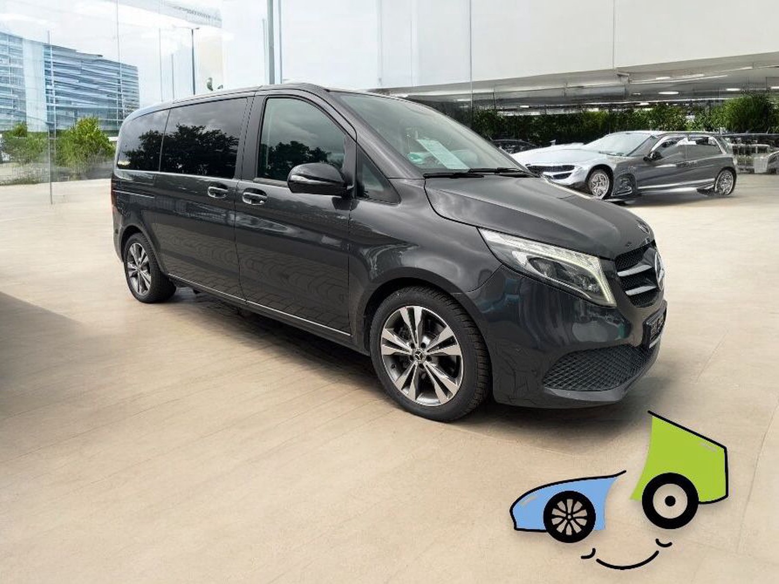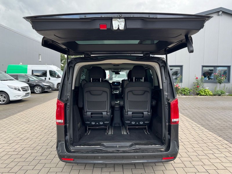 Ablagenetz an Vordersitzlehne links, Adaptives Bremslicht, Airbag Beifahrerseite, Airbag Fahrerseite, Anfahrhilfe (Berganfahr-Assistent), Anhängerkupplung: Elektrik für Anhängersteckdose, Anzeige für Waschwasserstand, Armlehnen Fahrgastraum, Außenspiegel asphärisch, beide, Außenspiegel elektr. verstell- und heizbar, beide, Außenspiegel mit integrierter Blinkleuchte, Außentemperaturanzeige, Beleuchtung im Haltegriff Fond, BlueEfficiency-Paket, Bodenbelag: Teppich im Fahrerraum, Bodenbelag: Teppich im Lade-/Fahrgastraum, Bremsassistent, Bremssystem mit ABS+ASR, DAB-Tuner (Radioempfang digital), Dachverkleidung / Innenhimmel Stoff grau, Design- und Ausstattungslinie Edition, Direktlenkung mit variabler Lenkkraft-Unterstützung, Edition, Einschaltautomatik für Fahrlicht, Einstiegsgriff hinten, Einstiegsleuchten, Fahrassistenz-System: Attention-Assist (Müdigkeitserkennungs-Sensor), Fahrassistenz-System: Pannenmanagement, Fahrassistenz-System: Seitenwind-Assistent, Fenster für hintere Türen / Heckklappe mit Wisch-/Waschanlage, Fenster im Lade-/FG-Raum: - elektr. ausstellbar, hinten links/rechts, Fenster im Lade-/FG-Raum: - feststehend, vorn links, Fenster im Lade-/FG-Raum: - feststehend, vorn rechts, Feststellbremse elektrisch, Feststeller Schiebetür (Aktiv), Getriebe Automatik GTronic - (9-Stufen), Gurtstraffer, Haltegriffe im Fond, Handschuhfach abschließbar, Harnstofftank (AdBlue): 24 Ltr., Heckklappe mit Verglasung, Heckscheibe heizbar, Karosserie/Aufbau: Bus, Karosserie/Aufbau: Kompakt, Kindersicherung, Klimaautomatik Fond (Tempmatik), Kombiinstrument mit Farbdisplay, Komfortbeleuchtung im Fahrgast-/Laderaum, Kommunikationsmodul Mercedes me connect (Internetbasierende Dienste), Kopf-Airbag-System (Windowbag), Kopf-Schulter-Airbag (Thoraxbag) Fahrer-/Beifahrerseite, Lenkrad (Lenksäule mech. verstellbar), Lenkrad mit Multifunktion inkl. Reiserechner, Leuchtweitenregelung, Mercedes-Benz Notrufsystem, Metallic-Lackierung, Mittelkonsole vorn mit Rollo / Ablage, Modellpflege, Motor 2,0 Ltr. - 174 kW CDI KAT, Park-Paket, PKW-Zulassung, PTC Heater, Radstand 3200 mm, Reifendruck-Kontrollsystem, Rückspiegel innen, Schadstoffarm nach Abgasnorm Euro 6d, Scheibenwischer mit Regensensor, Sicherheitsgurt-System mit Warnanlage (Beifahrerseite), Sitzausstattung: Isofix-Kindersitz-System, Sitzausstattung: Schnellverriegelung für Sitzschienen-System, Sitzbezug / Polsterung: Stoff, Sitze im Fahrerhaus: Fahrersitz heizbar, Sitze im Lade-/FG-Raum: 1.Reihe, 1 Einzelsitz links, Sitze im Lade-/FG-Raum: 1.Reihe, 1 Einzelsitz rechts, Sitze im Lade-/FG-Raum: 2.Reihe, 1 Einzelsitz links, Sitze im Lade-/FG-Raum: 2.Reihe, 1 Einzelsitz rechts, Sonnenblenden mit Spiegel (beleuchtet), Spiegel-Paket, Sport-Fahrwerk, Sport-Paket Exterieur, Spur-Paket, Steckdose (12V-Anschluß) im Lade-/Fahrgastraum, Steckdosen (12V-Anschluß) im Lade-/Fahrgastraum, 2-fach, Stoßfänger / Stoßf.-Leiste seitlich + Griff an Heckklappe lackiert, Verglasung hinten abgedunkelt / Schwarzglas, Vlies-Batterie 92 Ah, Vorbereitung Navigationssystem (für Multimediasystem MBUX), Warmluftkanal zum Lade-/Fahrgastraum, Wartungsintervall-Anzeige Assyst, Wärmeschutzverglasung, Zul. Gesamtgewicht 3,10 t
