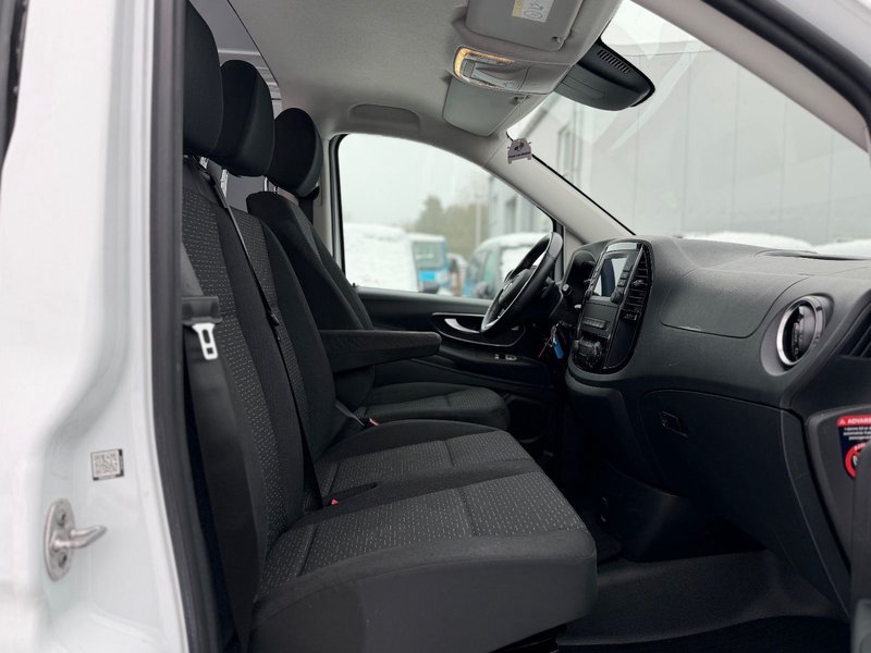 3. Bremsleuchte, Adaptives Bremslicht, Airbag Beifahrerseite, Airbag Fahrerseite, Anfahrhilfe (Berganfahr-Assistent), Außenspiegel asphärisch, beide, Außentemperaturanzeige, Befestigungsschienen für Dachträger, BlueEfficiency-Paket, Bremsassistent, Deckenleuchte im Laderaum, Design- und Ausstattungslinie Base, Fahrassistenz-System: Attention-Assist (Müdigkeitserkennungs-Sensor), Fahrassistenz-System: Pannenmanagement, Fahrassistenz-System: Seitenwind-Assistent, Frontscheibe mit Scheibenantenne, Generator 200 A, Getriebe Automatik GTronic - (9-Stufen), Getränkehalter vorn, Gurtstraffer, Handschuhfach abschließbar, Karosserie/Aufbau: extra lang, Karosserie/Aufbau: Kasten Standard, Kommunikationsmodul (LTE) für digitale Dienste, Kraftstofftank: Haupttank 57 Ltr., Lastenverankerung / Verzurrösen, Mercedes-Benz Notrufsystem, Modellpflege, Motor 2,0 Ltr. - 100 kW CDI KAT, Nebelschlussleuchte, Radstand 3430 mm, Schadstoffarm nach Abgasnorm Euro 6d-TEMP, Schiebetür Lade-/Fahrgastraum rechts, Sicherheitsgurt-System mit Warnanlage (Fahrer-/Beifahrerseite), Sitzbezug / Polsterung: Stoff, Stahlfelgen 6,5x16, Verkleidung Fenstersäulen, Verkleidung im Lade-/FG-Raum: Hartfaser halbhoch, Wartungsintervall-Anzeige Assyst.