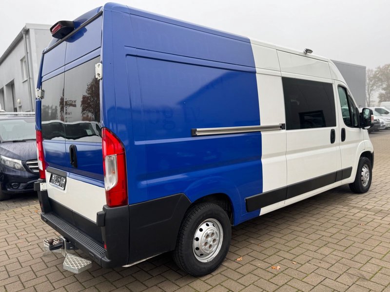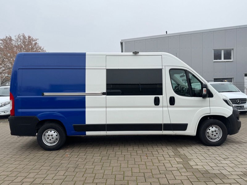 Airbag Fahrerseite, Außenspiegel elektr. verstell- und heizbar, beide, Außenspiegel mit Weitwinkel, Bordcomputer, Geschwindigkeits-Begrenzeranlage, Heckflügeltüren (Öffnungswinkel 180 Grad), Karosserie/Aufbau: Kasten Hochraum Standard, Kopfstützen gepolstert, Kraftstofftank: 90 Ltr., Motor 2,2 Ltr. - 103 kW Blue-HDI FAP KAT (2179 ccm), Radstand 4035 mm, Reserverad in Fahrbereifung, Schadstoffarm nach Abgasnorm Euro 6d, Scheibenbremse hinten, SCR-System (AdBlue-Technologie), Seitenschutzleisten, Sitzbezug / Polsterung: Stoff, Sitze im Fahrerhaus: Beifahrerdoppelsitz (inkl. Automatiksicherheitsgurt), Sitze im Fahrerhaus: Fahrersitz mit Armlehne, höhenverstellbar, Start/Stop-Anlage, Trittstufe unter Schiebetür rechts (elektrisch), Zul. Gesamtgewicht 3,50 t.