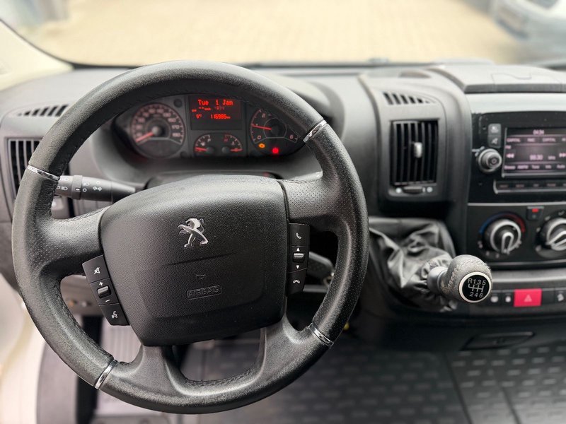 Airbag Fahrerseite, Audiosystem: Radio mit CD-Player (MP3-fähig) - Display integriert, Außenspiegel elektr. verstell- und heizbar, beide, Außenspiegel mit Weitwinkel, Bordcomputer, Geschwindigkeits-Begrenzeranlage, Heckflügeltüren (Öffnungswinkel 180 Grad), Heckflügeltüren ohne Verglasung, Karosserie/Aufbau: Kasten Hochraum Standard, Kopfstützen gepolstert, Kraftstofftank: 90 Ltr., Motor 2,2 Ltr. - 103 kW Blue-HDI FAP KAT (2179 ccm), Radstand 3450 mm, Reserverad in Fahrbereifung, Schadstoffarm nach Abgasnorm Euro 6d-TEMP, Scheibenbremse hinten, SCR-System (AdBlue-Technologie), Seitenschutzleisten, Sitzbezug / Polsterung: Stoff, Sitze im Fahrerhaus: Fahrersitz mit Armlehne, höhenverstellbar, Start/Stop-Anlage, Trittstufe unter Schiebetür rechts (elektrisch), Zul. Gesamtgewicht 3,30 t.