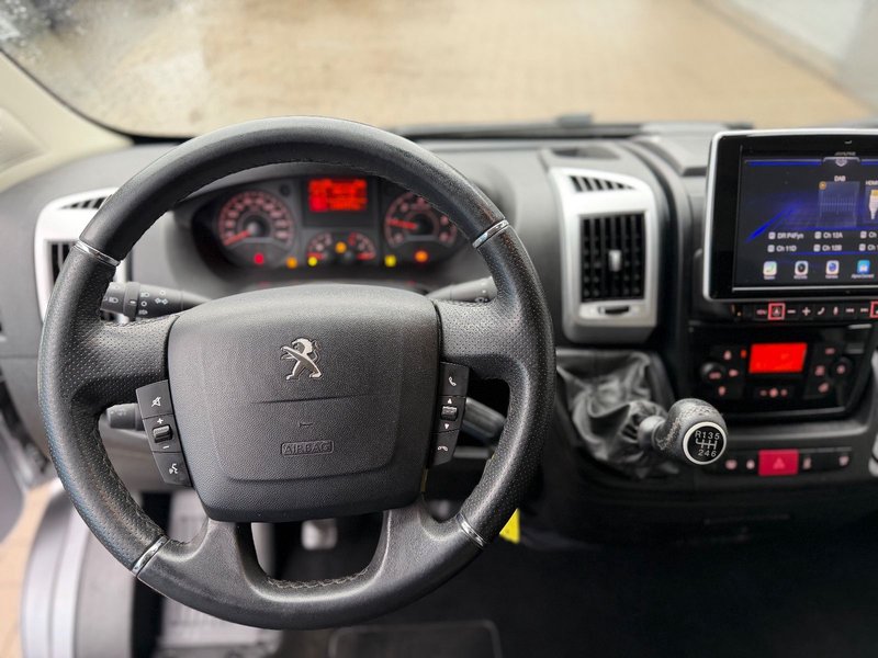 Airbag Fahrerseite, Audiosystem: Radio mit CD-Player (MP3-fähig) - Display integriert, Außenspiegel elektr. verstell- und heizbar, beide, Außenspiegel mit Weitwinkel, Bordcomputer, Geschwindigkeits-Begrenzeranlage, Heckflügeltüren (Öffnungswinkel 180 Grad), Karosserie/Aufbau: Kasten Hochraum Standard, Kopfstützen gepolstert, Kraftstofftank: 90 Ltr., Motor 2,2 Ltr. - 121 kW Blue-HDI FAP KAT (2179 ccm), Radstand 3450 mm, Reserverad in Fahrbereifung, Schadstoffarm nach Abgasnorm Euro 6d-TEMP, Scheibenbremse hinten, SCR-System (AdBlue-Technologie), Seitenschutzleisten, Sitzbezug / Polsterung: Stoff, Sitze im Fahrerhaus: Beifahrerdoppelsitz (inkl. Automatiksicherheitsgurt), Sitze im Fahrerhaus: Fahrersitz mit Armlehne, höhenverstellbar, Start/Stop-Anlage, Zul. Gesamtgewicht 3,50 t