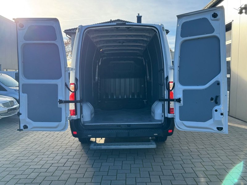 Ablagegalerie, Airbag Fahrerseite, Außenspiegel elektr. verstell- und heizbar, Außentemperaturanzeige, Begrenzungsleuchten seitlich, Bremsassistent, Drehzahlmesser, Elektr. Bremskraftverteilung, Heckflügeltüren ohne Verglasung, Innenraumfilter: Pollenfilter, Karosserie/Aufbau: Kasten Hochraum Standard, Kühlergrill mit Chromeinfassung, Laderaumtrennwand, Lenksäule (Lenkrad) höhenverstellbar, Modellpflege (2), Motor 2,3 Ltr. - 132 kW dCi Diesel FAP Energy KAT, Radstand 4332 mm, Reifen-Reparaturset, Schadstoffarm nach Abgasnorm Euro 6d-TEMP, Schaltpunktanzeige, Schiebetür Lade-/Fahrgastraum rechts, Schmutzfänger vorn, Seitenschutzleisten, Sitzbezug / Polsterung: Stoff, Sitze im Fahrerhaus: Beifahrerdoppelsitz multifunktional, Sitze im Fahrerhaus: Fahrersitz höhenverstellbar, Start/Stop-Anlage Motor, Tagfahrlicht LED, Verzurrösen Laderaumboden, Wärmeschutzverglasung, Zul. Gesamtgewicht 3,50 t.