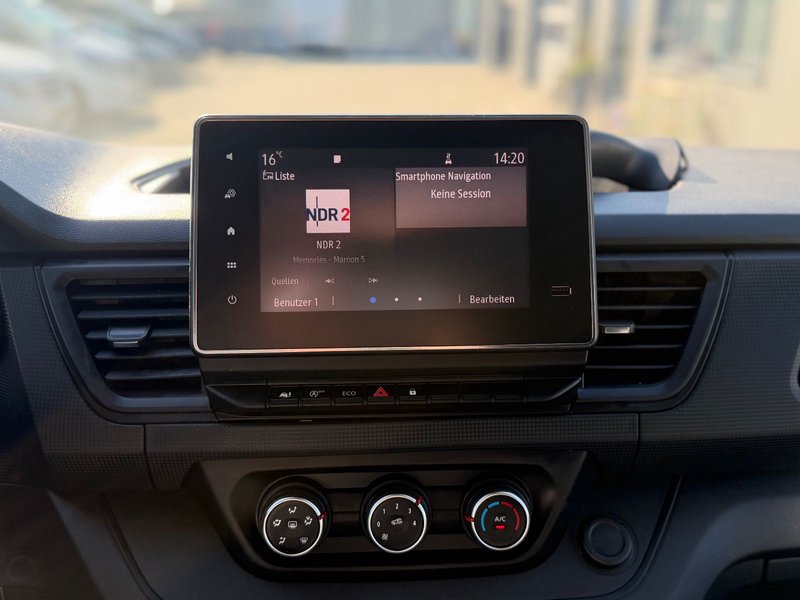 Airbag Fahrerseite, Antriebs-Schlupfregelung (ASR), Audiosystem: Radio CONNECT R&GO, Batterie 85 Ah, Bordcomputer, Drehzahlmesser, Einschaltautomatik für Fahrlicht, Entfall Keyless-Entry, Handschuhfach mit Kühlfunktion, Heckflügeltüren ohne Verglasung, Innenraumfilter: Pollenfilter, Karosserie/Aufbau: Kasten Standard, Kraftstofftank: 80 Ltr., Lenksäule (Lenkrad) verstellbar, Modellpflege (2), Motor 2,0 Ltr. - 96 kW BLUE dCi Diesel FAP KAT, Nebelschlussleuchte, Radstand 3498 mm, Schadstoffarm nach Abgasnorm Euro 6d, Schiebetür Lade-/Fahrgastraum rechts, Sitzbezug / Polsterung: Stoff, Sitze im Fahrerhaus: Fahrersitz Komfort 3-fach verstellbar, Tagfahrlicht LED, Verzurrösen im Laderaum seitlich, Vorrüstung für Elektrik Aufbau, Wärmeschutzverglasung, Bi-Xenon-Scheinwerfer für Abblend- und Fernlicht, mit LED-Tagfahrlicht.