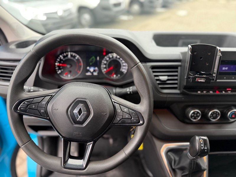 Airbag Fahrerseite, Antriebs-Schlupfregelung (ASR), Audiosystem: Radio CONNECT R&GO, Außenspiegel elektr. verstell- und heizbar, Batterie 85 Ah, Bordcomputer, Drehzahlmesser, Einschaltautomatik für Fahrlicht, Entfall Keyless-Entry, Getriebe 6-Gang - Doppelkupplungsgetriebe, Handschuhfach mit Kühlfunktion, Heckflügeltüren ohne Verglasung, Innenraumfilter: Pollenfilter, Karosserie/Aufbau: Kasten Standard, Kraftstofftank: 80 Ltr., Laderaumtrennwand, Lenksäule (Lenkrad) verstellbar, Modellpflege (2), Motor 2,0 Ltr. - 110 kW BLUE dCi Diesel FAP KAT, Nebelschlussleuchte, Radstand 3498 mm, Reifen-Reparaturset, Schadstoffarm nach Abgasnorm Euro 6d, Schiebetür Lade-/Fahrgastraum rechts, Sitzbezug / Polsterung: Stoff, Sitze im Fahrerhaus: Beifahrerdoppelsitz, Sitze im Fahrerhaus: Fahrersitz Komfort 3-fach verstellbar, Tagfahrlicht LED, Verzurrösen im Laderaum seitlich, Vorrüstung für Elektrik Aufbau, Wärmeschutzverglasung.