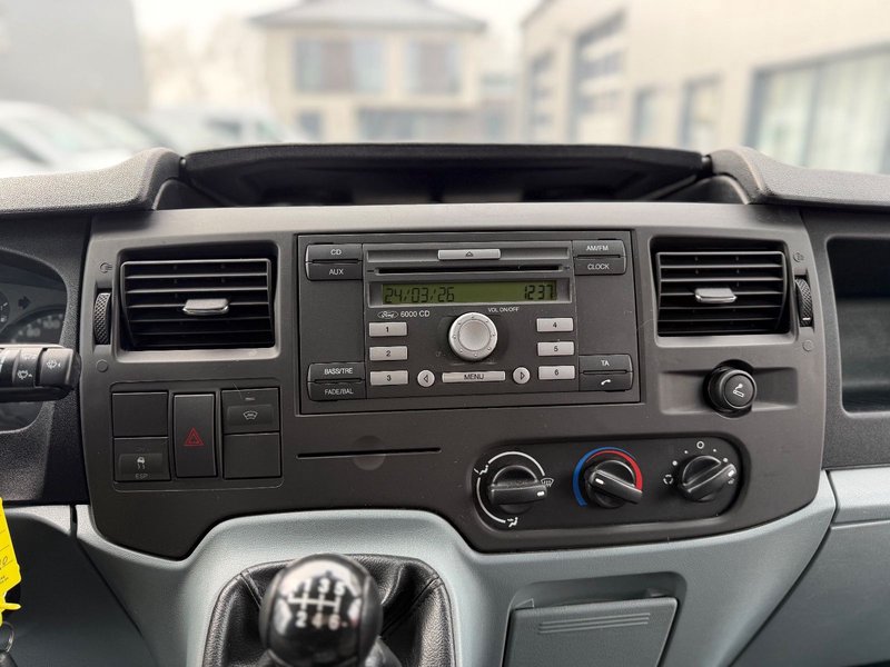 2. Batterie, Airbag Fahrerseite, Audiosystem 6000 (Radio/CD-Player), Blinkleuchte in Außenspiegel integriert, Doppelschließanlage, Drehzahlmesser, Elektron. Differentialsperre (EDS), Fahrassistenz-System: Berganfahr-Assistent, Heckflügeltüren ohne Verglasung, Heizung mit Umluftschaltung, Karosserievariante: Hochdach, Laderaumtrennwand hoch hinter Fahrer und Beifahrer, Leuchtweitenregelung, Motor 2,2 Ltr. - 114 kW TDCi KAT, Produktionsstätte: Otosan, Radstand 3750 mm, Radvollabdeckungen, Schadstoffarm nach Abgasnorm Stage 5 / Euro und 5, Schiebetür Lade-/Fahrgastraum rechts, Schmutzfänger vorn und hinten, Seitenschutzleisten, Sitz-Paket 22: Fahrersitz (3-fach verstellbar) - Beifahrerdoppelsitz, Verglasung getönt, Verkleidung im Lade-/FG-Raum: Hartfaser.
