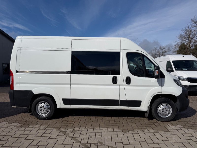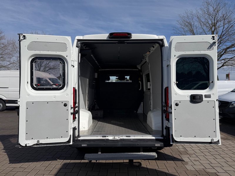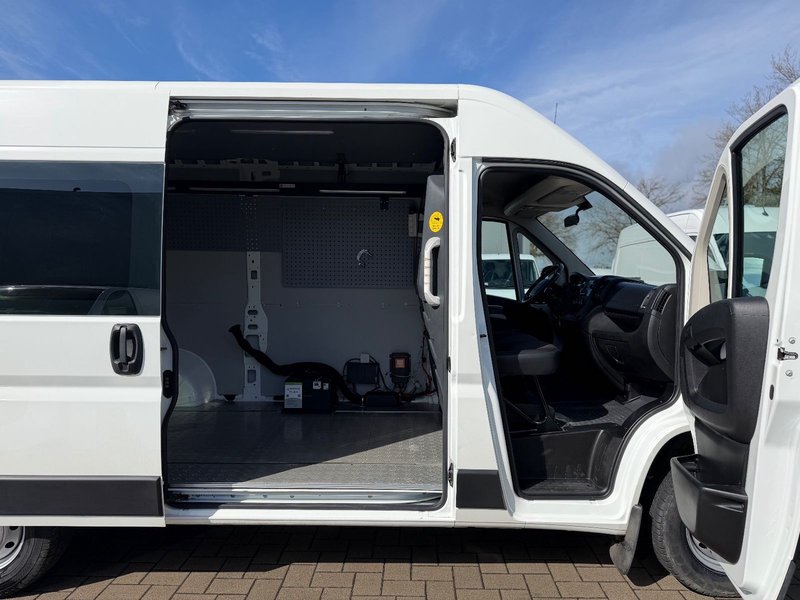Airbag Fahrerseite, Audiosystem: Radio mit CD-Player (MP3-fähig) - Display integriert, Außenspiegel elektr. verstell- und heizbar, beide, Außenspiegel mit Weitwinkel, Bordcomputer, Geschwindigkeits-Begrenzeranlage, Heckflügeltüren (Öffnungswinkel 180 Grad), Karosserie/Aufbau: Kasten Hochraum Standard, Kopfstützen gepolstert, Kraftstofftank: 90 Ltr., Motor 2,2 Ltr. - 103 kW Blue-HDI FAP KAT (2179 ccm), Radstand 3450 mm, Reserverad in Fahrbereifung, Schadstoffarm nach Abgasnorm Euro 6d-TEMP, Scheibenbremse hinten, SCR-System (AdBlue-Technologie), Seitenschutzleisten, Sitzbezug / Polsterung: Stoff, Sitze im Fahrerhaus: Beifahrerdoppelsitz (inkl. Automatiksicherheitsgurt), Sitze im Fahrerhaus: Fahrersitz mit Armlehne, höhenverstellbar, Start/Stop-Anlage, Trittstufe unter Schiebetür rechts (elektrisch), Zul. Gesamtgewicht 3,30 t.