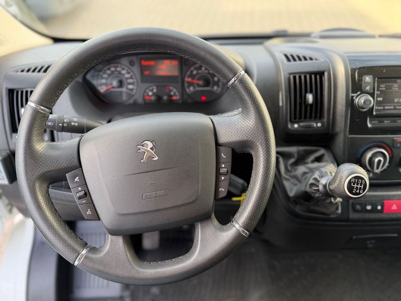 Airbag Fahrerseite, Audiosystem: Radio mit CD-Player (MP3-fähig) - Display integriert, Außenspiegel elektr. verstell- und heizbar, beide, Außenspiegel mit Weitwinkel, Bordcomputer, Geschwindigkeits-Begrenzeranlage, Heckflügeltüren (Öffnungswinkel 180 Grad), Heckflügeltüren mit Verglasung, Karosserie/Aufbau: Kasten Hochraum Standard, Kopfstützen gepolstert, Kraftstofftank: 90 Ltr., Motor 2,2 Ltr. - 103 kW Blue-HDI FAP KAT (2179 ccm), Radstand 3000 mm, Reserverad in Fahrbereifung, Schadstoffarm nach Abgasnorm Euro 6d-TEMP, Scheibenbremse hinten, Schiebetür Lade-/Fahrgastraum rechts, SCR-System (AdBlue-Technologie), Seitenschutzleisten, Sitzbezug / Polsterung: Stoff, Sitze im Fahrerhaus: Beifahrerdoppelsitz (inkl. Automatiksicherheitsgurt), Sitze im Fahrerhaus: Fahrersitz mit Armlehne, höhenverstellbar, Start/Stop-Anlage, Trittstufe unter Schiebetür rechts (elektrisch), Zul. Gesamtgewicht 3,30 t.