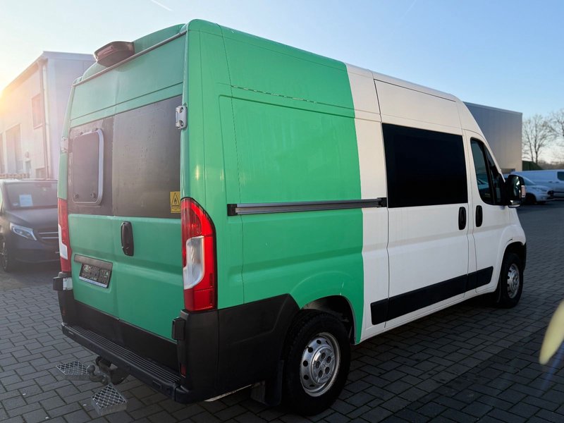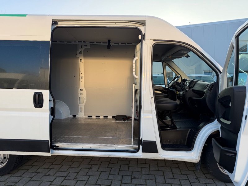 Airbag Fahrerseite, Audiosystem: Radio mit CD-Player (MP3-fähig) - Display integriert, Außenspiegel elektr. verstell- und heizbar, beide, Außenspiegel mit Weitwinkel, Bordcomputer, Geschwindigkeits-Begrenzeranlage, Heckflügeltüren (Öffnungswinkel 180 Grad), Karosserie/Aufbau: Kasten Hochraum Standard, Kopfstützen gepolstert, Kraftstofftank: 90 Ltr., Motor 2,2 Ltr. - 103 kW Blue-HDI FAP KAT (2179 ccm), Radstand 3450 mm, Reserverad in Fahrbereifung, Schadstoffarm nach Abgasnorm Euro 6d-TEMP, Scheibenbremse hinten, SCR-System (AdBlue-Technologie), Seitenschutzleisten, Sitzbezug / Polsterung: Stoff, Sitze im Fahrerhaus: Beifahrerdoppelsitz (inkl. Automatiksicherheitsgurt), Sitze im Fahrerhaus: Fahrersitz mit Armlehne, höhenverstellbar, Start/Stop-Anlage, Trittstufe unter Schiebetür rechts (elektrisch), Zul. Gesamtgewicht 3,30 t.